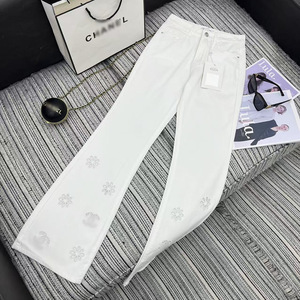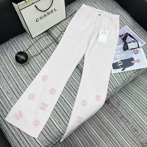 Nanyou ディスプレイ女性のパンツ 2025 夏の新刺繍マイクロフレアジーンズ女性のレトロスリムナローパンツ