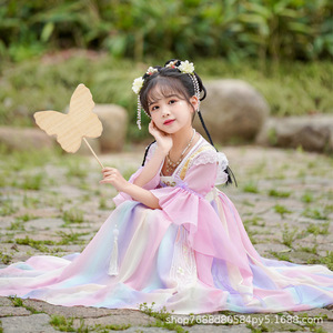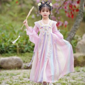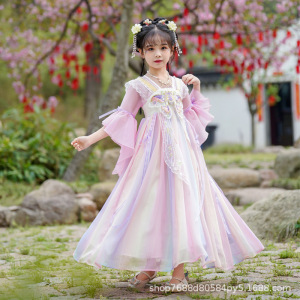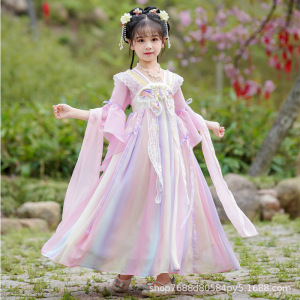 漢服女の子夏 2025 新しい中国風の女の子古代衣装ドレス子供唐装古代スタイルスーパー妖精スカート