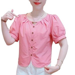 2025时尚百搭衬衫气质有质感显瘦s短袖洋气减龄974粉红色绿色