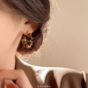 メイラードタイガーアイストーンレトロイヤリングイヤリング 2024 新しいホットスタイルイヤリング女性のニッチライト高級ハイエンドイヤリング