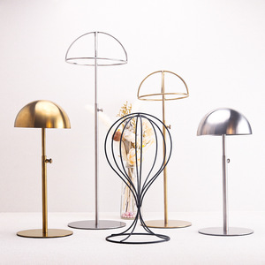 新しい帽子の展示棚の頭の型の棚はステンレスの糸を引く帽子の棚の鉄芸の商用の陳列棚の道具を調節することができます。
