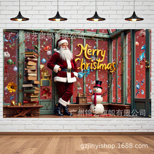 2025 新しいクリスマス背景布サンタクロース雪だるま油絵スタイルバナーホリデーパーティー装飾雰囲気