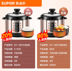 Supor 電気圧力鍋 家庭用スマート 5L ダブルガロン 全自動多機能炊飯器 SY-48YC8606S