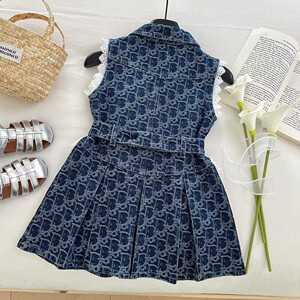 女の子のデニムのワンピース2025夏の新型レースの襟のベストのスカートの女の子の韓国版の子供のスカート