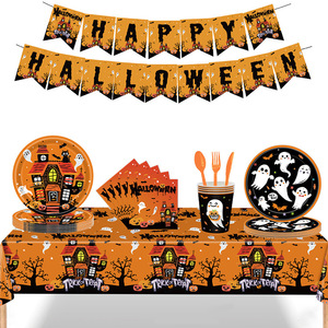 スポットレターハロウィンパーティー装飾ゴーストバナー使い捨て紙コップ紙皿ペーパータオルテーブルクロス食器セット