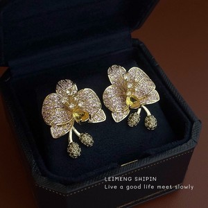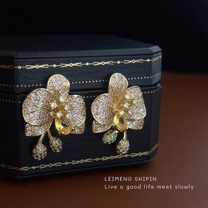 ヨーロッパとアメリカの新しいファッションライト高級フラワーイヤリング象嵌ジルコン光沢のある多用途レディイヤリングハイエンドレディースイヤリング