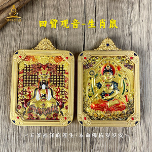 五方の富の神陀羅絵、五台山五羅の命仏ペンダント、金彩の浮き彫り、大黒天の八守護ガウ箱