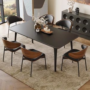 イタリア製スレートダイニングテーブルと椅子の組み合わせ、フルサポート底板、ホームレストラン、小さなアパート、長方形、モダンでシンプルなダイニングテーブル