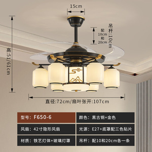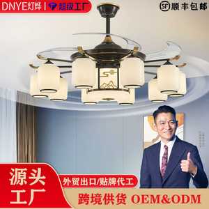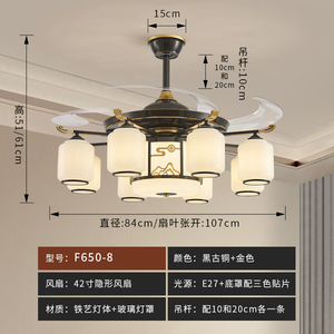 新しい照明新しい中国風ファンシャンデリアリビングルーム中国風シンプルな雰囲気ファンランプレストランヴィラホールランプ