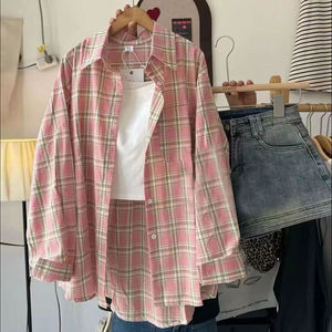 チェック柄シャツ女性 2025 春の新韓国ファッションガール小柄なレトロ長袖シャツカジュアルジャケット