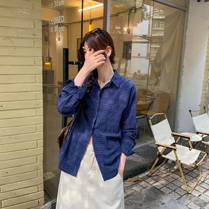YC91 小さな青いグリッド#コットンチェックシャツ