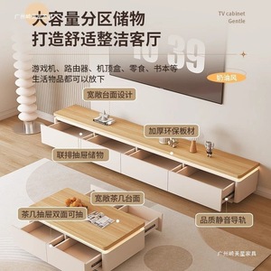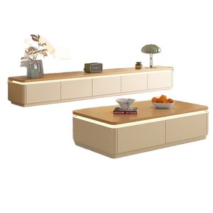 ログクリームスタイルフレンチテレビキャビネットコーヒーテーブル組み合わせラウンドコーナーリビングルームフロアスタンドホーム小さなアパートモダンシンプル