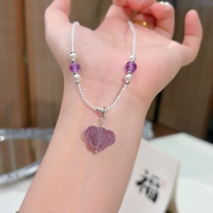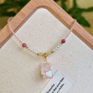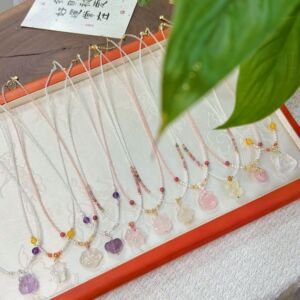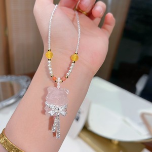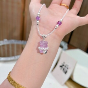 天然アメジスト小さな新鮮なクマドーパミンカラークリスタル子猫安全バックルネックレステルライトトルマリン鎖骨ネックレス