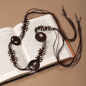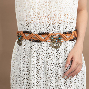 ボヘミアン復古風流蘇腰鎖女性の精緻な手編みウエストロープとスカート春夏民族風ベルト