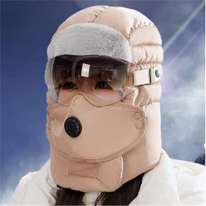 高级感冬季骑车涂鸦雷锋帽女士保暖防寒防风东北套头帽护耳护脖护