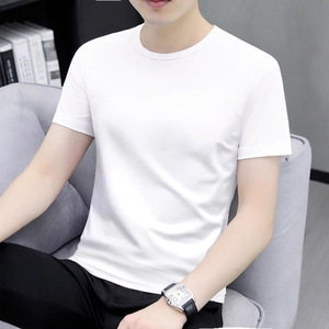メンズ半袖Tシャツ2025新作夏白ラウンドネック無地シンプル万能Tシャツ半袖ボトムストップス