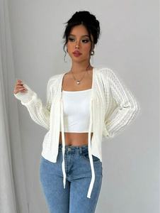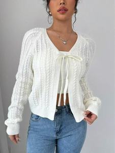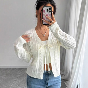 Amazonクロスボーダー新作ニットカーディガン蝶結びバックルなしVネックツイストニットデザインセーター