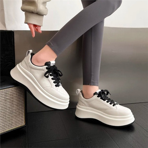 小香風厚底パンダシューズ、ラウンドトゥ牛革配色プラットフォームソールカジュアルスニーカー、万能ホワイトシューズ、女性用身長アップシューズ