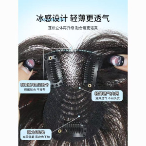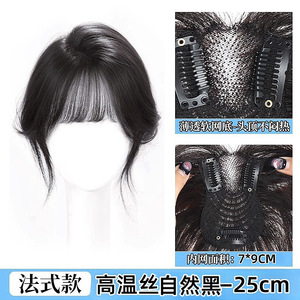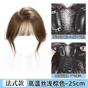女性用フレンチ前髪ウィッグ、ヘアピース、手編みパフシミュレーションヘア、薄くて白髪をカバーするハニーポットネットウィッグ