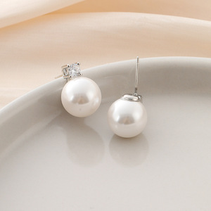 EH913 クラシックダイアナ妃 12 ミリメートルパールイヤリング女性のライト高級ジルコンノンホールピアス蚊よけイヤークリップイヤリング