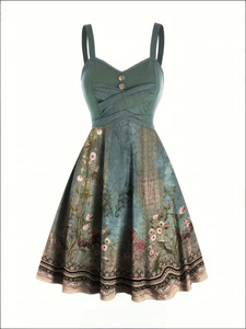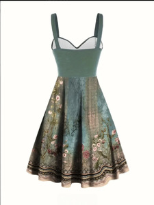 Amazon 2025 ホットスタイル エレガント グリーン フローラル プリント チューブトップ サスペンダー ドレス