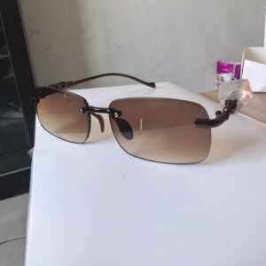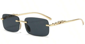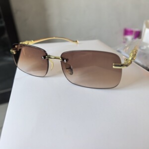 工場直販割引メタルフレームレスメガネ個性派チーター装飾カットエッジサングラスカラーレンズ近視メガネ
