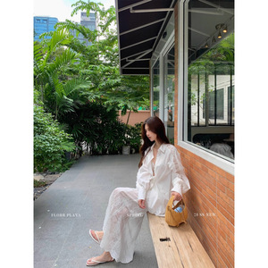 ヘビーデューティーステッチ水溶性レースシャツ+テンセルスカートデザインスーツ