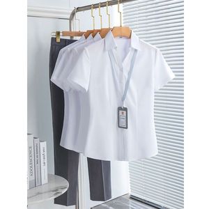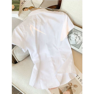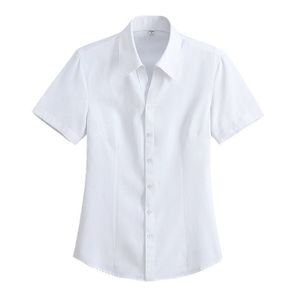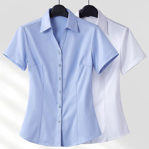 夏の新型vネック韓国版白シャツ女性半袖作業服正装修身職業シャツが痩せています。