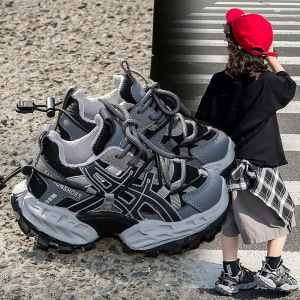 夏の新しい子供用スポーツシューズ、中型および大型の子供用男の子用お父さん靴、メッシュ通気性ランニングシューズ、女の子用靴