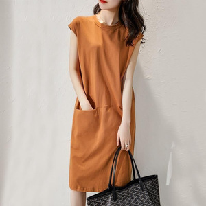 プラスサイズのドレス女性の春夏ルーズスリムソリッドカラー Tシャツドレス女性の韓国スタイルミッドレングス妖精スカート