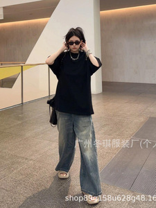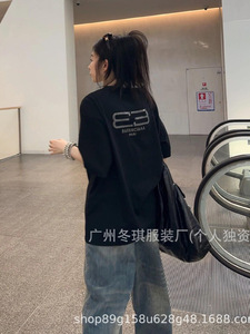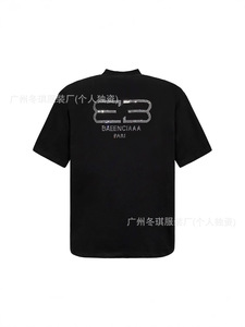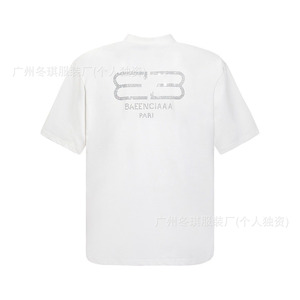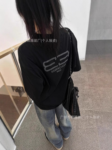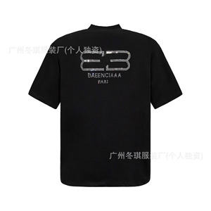 高版本B家背后BB烫钻短袖定织定染布料Os落肩宽松版型男女同款T恤