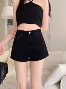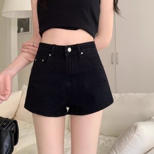 アメリカンプラスサイズデザイン刺繍ブラックデニムショートパンツ女性のための夏の2025新しい弾性痩身ヒップホットパンツ