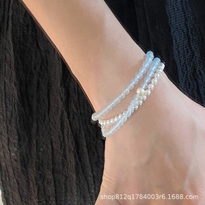 気質最適化海藍宝藍玉髄天然真珠二重手串百合は清新気質手飾り女をかぶっている