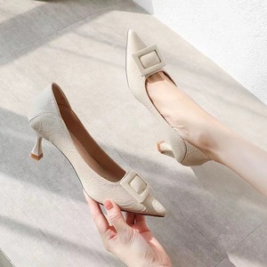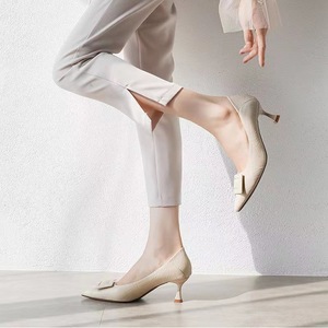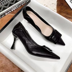 2025年新款尖头细跟高跟单鞋女气质正装中跟职业上班鞋百搭工作鞋
