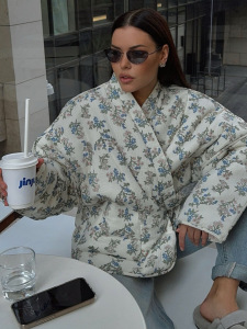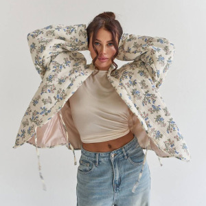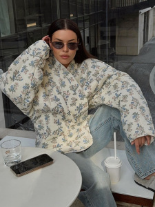AliExpress クロスボーダーカーディガンロングプリントコットンジャケット 2025 秋と冬の新しいホームカジュアルコットンジャケット女性のための