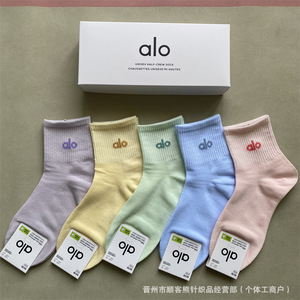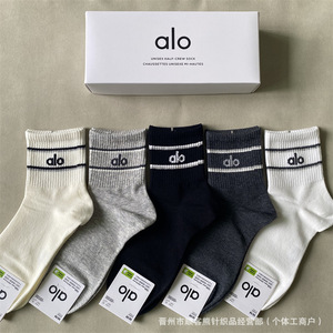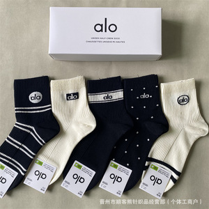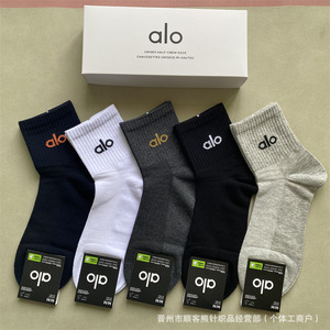 貿易靴下 alo 中短綿靴下 箱入り 5足組 四季綿靴下 吸汗通気性 レタードトレンドソックス ファッション