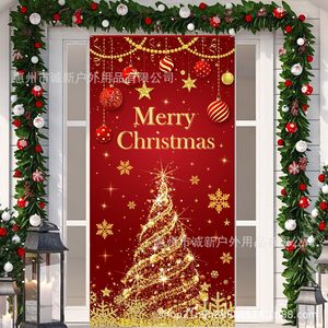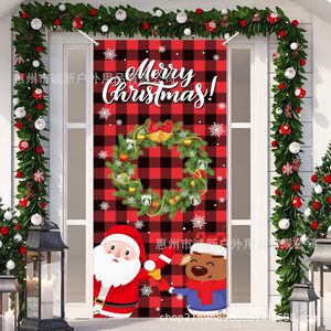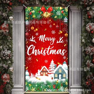 Amazonクロスボーダー新しいクリスマスドアカバーサンタクロースドアカバーホリデーパーティー雰囲気背景布卸売