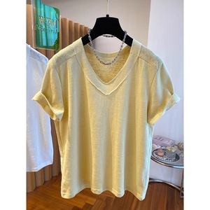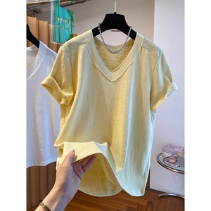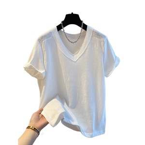 特大サイズ 150kg リバースウェアデザイン V ネック Tシャツレディース半袖 2025 新しいトップスファッショナブルな新しいスタイル多用途