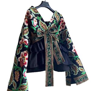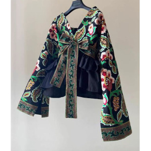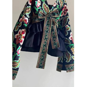 ヨーロッパレトロファッションニッチデザインエスニックスタイルグリーンプリントカーディガンジャケットレディース2025春新作