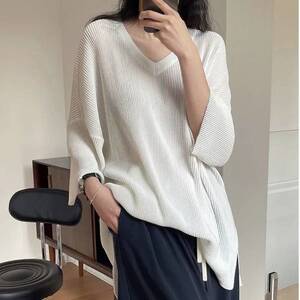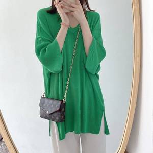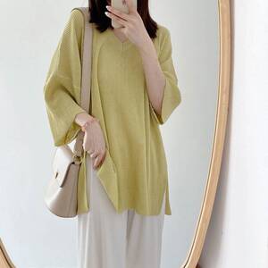 150kg プラスサイズの女性の襟スリットミッドレングス七分袖ルーズ痩身薄いアイスシルクシャツ女性のトップ