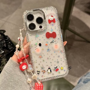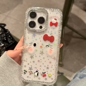 インレッドリボン KT 猫の表現 Apple 15promax 携帯電話ケース ポイント ダイヤモンド フレーム 16pro 保護ケースに適しています