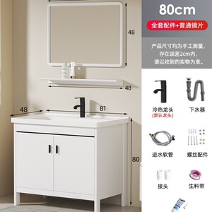 80セラミック洗面器+床キャビネット+通常のミラーキャビネット