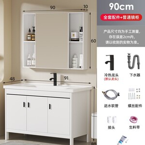 90セラミック洗面器+フロアキャビネット+通常のミラーキャビネット