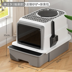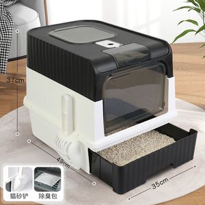 特大猫トイレ、完全密閉引き出し式両開きドア、臭気防止家庭用猫トイレ、猫トイレ