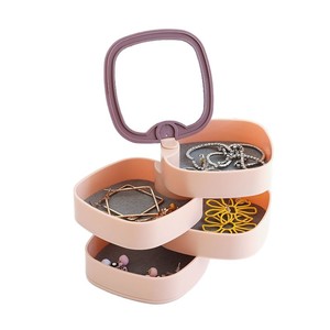 回転式ジュエリーボックス 化粧品収納ボックス デスクトップ防塵収納ボックス ネックレス イヤリング ジュエリーボックス PUレザー