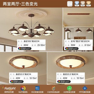 A0370-ウォールナット色の3頭身ロングシャンデリア+Xiao Aiクラスメイトのコントロールをサポート