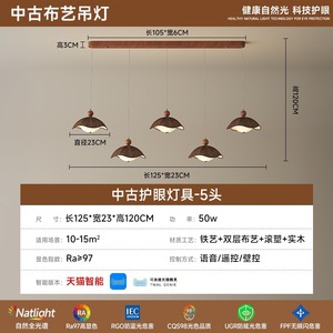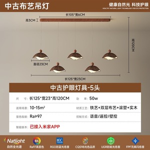 A0370-ウォールナット色5頭ロングシャンデリア+Tmall Elf対応