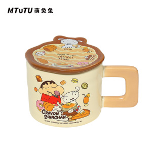 【正規品 クレヨンしんちゃん】カップ 漫画 コーヒーカップ 蓋付き 家庭用 セラミックマグ 高価値ウォーターカップ
