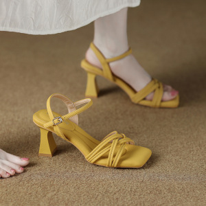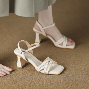 322-1 シープスキンバージョン足が疲れないワンストラップサンダル女性のための夏 2025 新しいファッションシルバーハイヒール