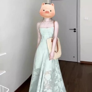 法式薄荷绿吊带连衣裙女夏季2025新款开春穿搭海边度假风收腰长裙